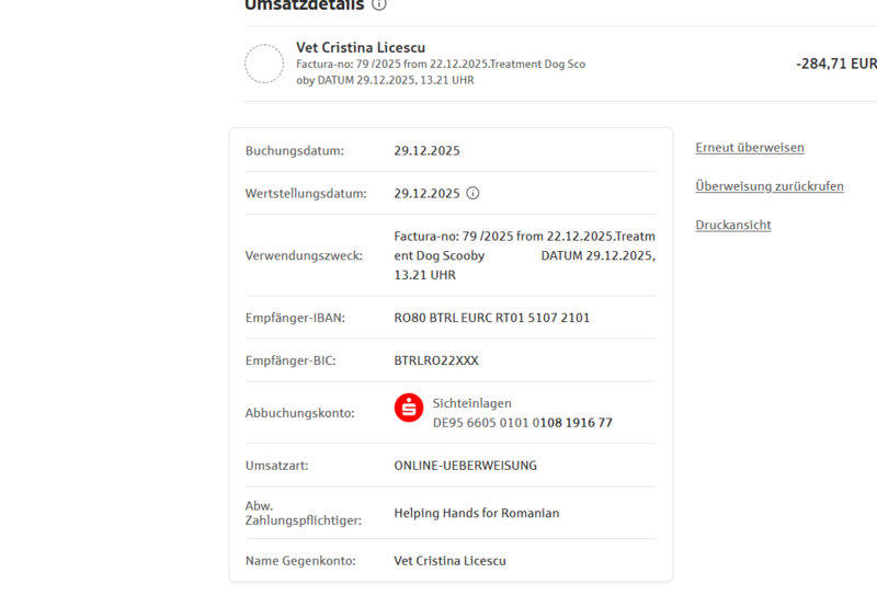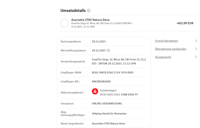 Wir, HHRS e.V., sagen Danke an alle Spender, Unterstützer und Freunde unserer rumänischen Fellnasen. Dank Euch konnte das private Shelter mit Futter versorgt werden. Rechnung und Überweisung anbei. Damit wir weiterhin helfen können, bitten wir um eine kleine Spende.